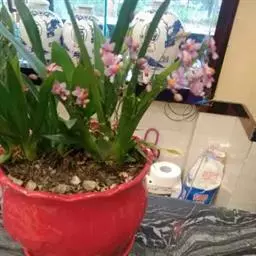 上盆(或翻盆)时间一般在春季3-4月或秋季10-11月。花盆以口小、盆深、底孔大的为佳。新从山上挖来的野生苗需理植于瓦盆(泥盆)中,这样兰花泥易干,通气性好.容易发根;2-3年后方可换人紫砂盆或瓷盆。兰花种植(在盆中)的方法与一般花卉不同,尤其是名种兰花,翻种移盆必须洗根。方法足将根浸入清水中,用旧牙刷或毛笔轻轻洗刷,切勿用力过大伤根;用剪刀将残叶、黄叶、断裂根、发黑腐烂根剪去,注意勿伤幼芽。然后将处理好的植株放在阴凉通风处晾干,待根部发白并显细小皱纹柔软时,再植入盆中。