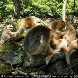 这个结群的社会里面,成年的公猴就只有一个,就是猴王,其他的是一些成年的母猴,这是一种一夫多妻制度的社会。然后在这个猴群里面还有一些未成年的小猴子,这些未成年的小猴子有雌性和雄性。而这些小猴长到三、四岁性成熟后,母猴仍然留在猴群中,跟着它的母亲和其他的阿姨们一起繁殖后代。而小公猴接近性成熟的时候,离开了它们的出生群,到其他的猴群中去当王。这个过程就需要打斗。如果这个新的小公猴打赢了,那么它就可以到另外一个猴群里边当猴王。如果它打不嬴,它就继续和几个小公猴构成一个临时的群,新猴王上任之后,就出现一个很残忍的局面,就是杀婴行为。使得原来还带着小猴的这个母猴尽快和它交配繁殖,繁殖它自己的后代。