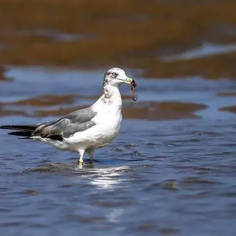 银鸥又名黑背鸥、淡红脚鸥、黄腿鸥、鱼鹰子和叼鱼狼等,全长约60厘米。体型厚重,头部平坦。夏羽头、颈…