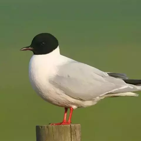 鸥嘴噪鸥,中型水禽,体长31~39厘米。夏羽额、头顶、枕和头的两侧从眼和耳羽以上黑色。背、肩、腰和…