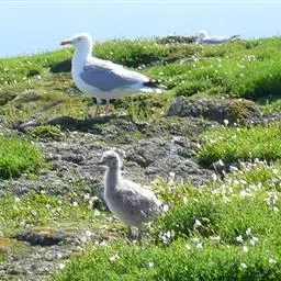 灰翅鸥,夏羽头、颈、腰、尾白色;肩、背和翅上覆羽鸽灰色。冬羽和夏羽相似,但头和颈具淡褐色纵纹,有时…