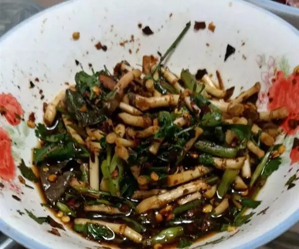 辅料:大蒜3瓣、酱油20克、辣椒油40克、糖5克、香油5克、花椒油5克、醋5克、适量盐。