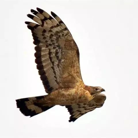褐耳鹰的体形比苍鹰要小得多,为小型猛禽,体长为31-44厘米,体重217-325克。上体灰色,…