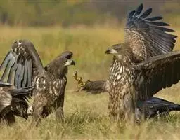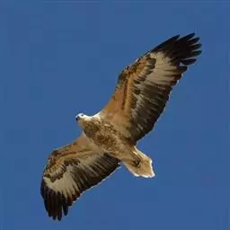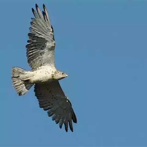 白肩雕:又名御雕,是大型猛禽。体长73-84厘米。体羽黑褐色,头和颈较淡,肩部有明显的白斑,在黑褐…