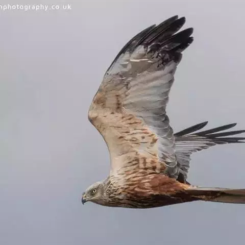 白腹鹞中型猛禽,体长50~60厘米。雄鸟头顶至上背白色,具宽阔的黑褐色纵纹。上体黑褐色,…