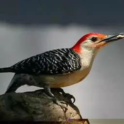 红腹啄木鸟成年雄鸟头项有红帽,翅膀和上体是黑白相间的斑纹状羽毛,腹部有一片红羽毛。头亦大,但颈较长,…