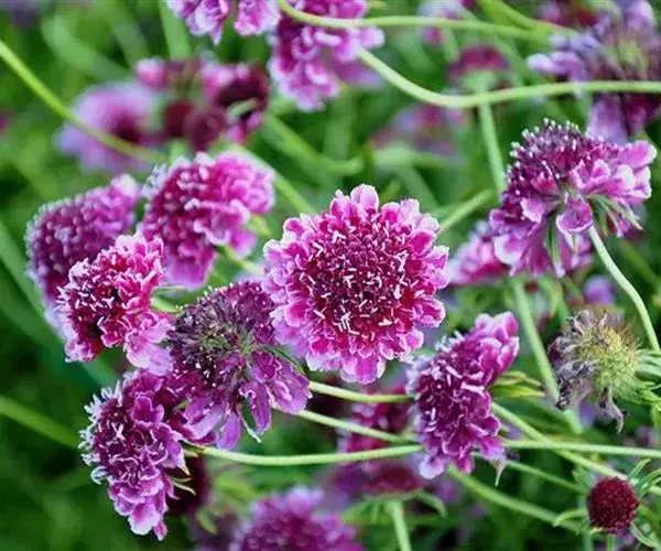 紫盆花为1-2年生草本花卉。莳养者可在第一批种子成熟后随采随播,精心养护,次年早春开花。也可将种子贮藏起来,待到次年春暖花开时播种,这样植株便可在9-10月开花。