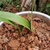 准备好兰盆及植料后,将兰株倒拿(根在上,叶在下)放于水龙头下以慢水冲洗,但水压切忌过强,以免伤兰根及叶子。用拇指和食指抓住兰头,小指抵住盆缘,用竹筷将根固定,当放入盆内时,尽量不要让根接触到盆壁。将豆粒大的混合石砾倒入盆底至三分之一处。然后倒入中粒植料至五分之四处,填实和尽量不要留下空间。将竹筷拔出,并摇实盆中植料。填实植料后,再用大粒植料埴入至距盆缘1.5厘米处。最后再倒入豆粒大植料,以将假鳞茎全部埋入土中为度,然后充分摇实。用压土工具轻压植料,并将表面弄平。种植完毕后,植料在盆中以中央稍高为好。