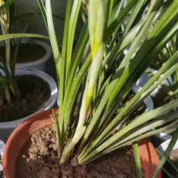 上盆(或翻盆)时间一般在春季3-4月或秋季10-11月。花盆以口小、盆深、底孔大的为佳。新从山上挖来的野生苗需理植于瓦盆(泥盆)中,这样兰花泥易干,通气性好.容易发根;2-3年后方可换人紫砂盆或瓷盆。兰花种植(在盆中)的方法与一般花卉不同,尤其是名种兰花,翻种移盆必须洗根。方法足将根浸入清水中,用旧牙刷或毛笔轻轻洗刷,切勿用力过大伤根;用剪刀将残叶、黄叶、断裂根、发黑腐烂根剪去,注意勿伤幼芽。然后将处理好的植株放在阴凉通风处晾干,待根部发白并显细小皱纹柔软时,再植入盆中。
