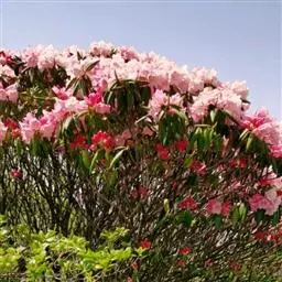 腺果杜鹃:常绿灌木,小乔木,高1.5-5米,稀达8米;树皮黄褐色;幼枝绿色,无毛,老枝灰色,…