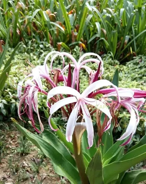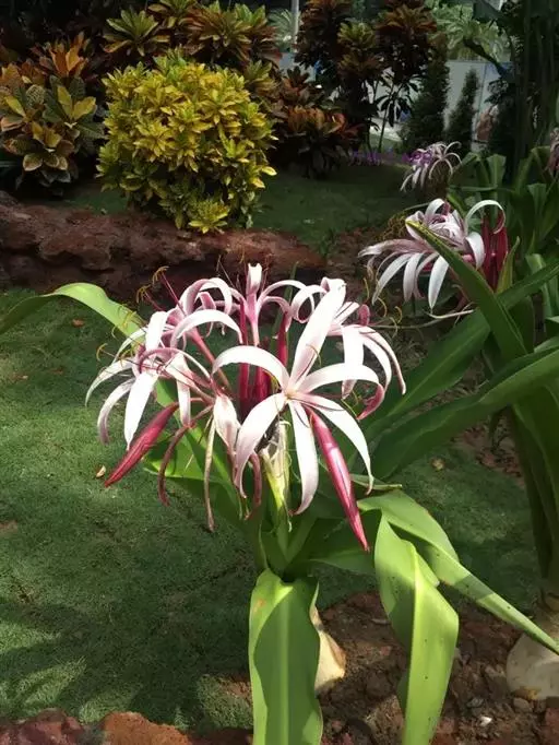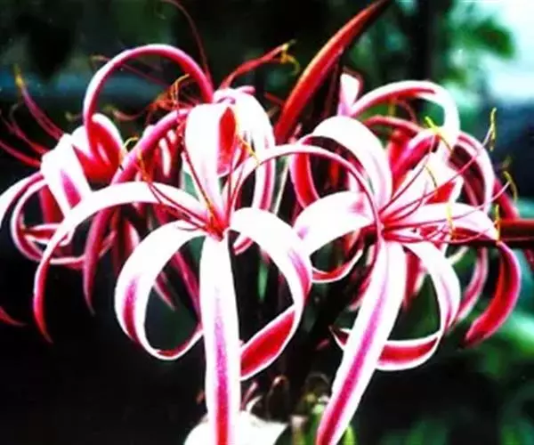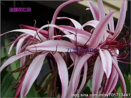 红花文殊兰又名西南文殊兰,拉丁文名Crinum latifolium L.多年生粗壮草本。分布于广西、贵州、云南。常生于河床、沙地。越南至印度及马来西亚也有分布。