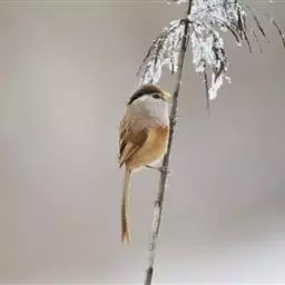 震旦鸦雀也是快乐的小精灵,结小群栖于芦苇地,它们的叫声急促而连贯,非常好听,唱得高兴的时候,它们还会展翅欢唱,可是力度并不大,但扇翅膀的频率比较高,一边振翅,一边低唱。