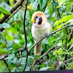 文须雀,别称髭雀、文须山雀,属雀形目、鹆鸟科、画眉亚科。眼先及髭纹黑色,头顶暗灰,…