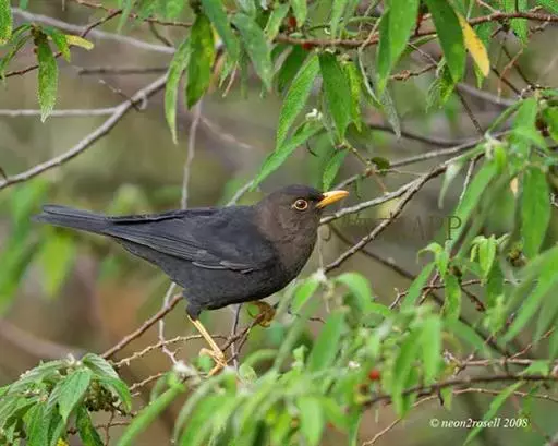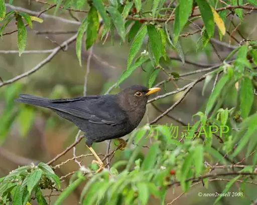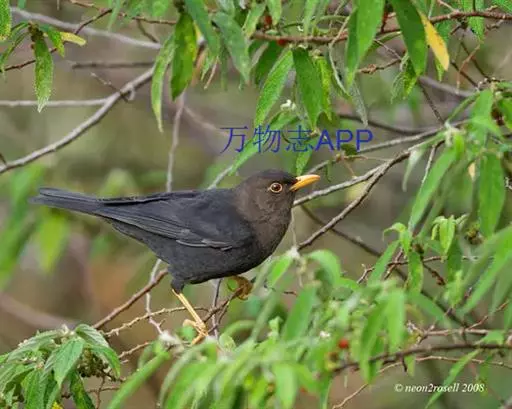 乌鸫(学名:Turdus merula):是鸟纲、鸫科的鸟类。体重55-126克,体长210-296毫米;雄性的乌鸫除了黄色的眼圏和喙外,全身都是黑色。雌性和初生的乌鸫没有黄色的眼圏,但有一身褐色的羽毛和喙。虹膜褐色,鸟喙橙黄色或黄色,脚黑色。