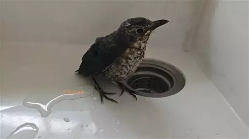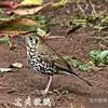 幼鸟上体自额至尾上覆羽,包括两翅的内侧覆羽均棕褐色,各羽具浅白色羽干纹。颏、喉中央棕白,缀以少许褐色斑,喉侧、胸和上腹等棕白微染栗色,各羽端缀以棕褐色矢状斑;两胁、下腹和覆腿羽均乌棕色,微缀以棕白色羽干纹;尾下覆羽暗褐色。