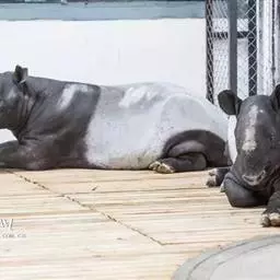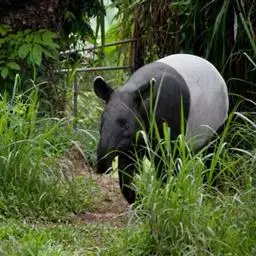 亚洲貘:亦称马来貘,是貘类中最大的一种,体长为1.8-2.5米,肩高90-120厘米,尾长5-10…