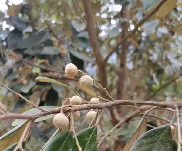 乔木,高4-20米,胸径达40厘米,树皮红褐色或灰褐色,粗糙;嫩枝稍扁,具槽纹,被锈褐色星状绒毛,老枝渐变无毛,圆柱形,紫褐色或灰褐色。叶互生,革质,椭圆形、长椭圆形或椭圆状披针形,长5-15(-18)厘米,宽2-5(-8)厘米,顶端渐尖,尖头有时稍弯,基部楔形,边近全缘,上面无毛或仅中脉疏被星状毛,下面密被黄褐色至灰褐色星状绒毛,侧脉每边5-12条,中脉在上面凹陷,下面隆起,第三级小脉近平行,下面较明显隆起;叶柄长1-1.5(-2)厘米,上面具深槽或近四棱形,密被灰褐色或锈色星状绒毛。总状花序或圆锥花序,顶生或腋生,长6-12厘米;花序梗和花梗均密被灰褐色或锈色星状柔毛;花白色,长10-15毫米;花梗长1-3毫米;小苞片钻形或舌形,长2-3厘米,密被星状柔毛;花萼杯状,高3-5(-7)毫米,宽2-4(-7)毫米,萼齿三角形或波状,外面密被灰黄色星状绒毛和疏生褐棕色或黄褐色星状短柔毛,内面近顶端疏被白色长柔毛;花冠4(-5) 裂,裂片披针形或长圆形,长8-10毫米,宽2-3毫米,外面密被紧贴星状短柔毛,内面无毛,干时暗紫色或黄褐色,边缘常狭内褶,花蕾时作镊合状排列,花冠管短,无毛;雄蕊8-10枚,较花冠稍短,花丝扁平,下部联合成管,无毛,上部分离,被星状短柔毛,花药长圆形,长约3毫米;花柱约与花冠近等长,无毛。果实卵状球形,直径1-1.8厘米,密被灰色至褐色星状绒毛,成熟时从顶端向下3瓣开裂;种子褐色,无毛,宿存,花萼包围果实的基部至一半。花期3-5月,果期9-11月。