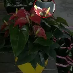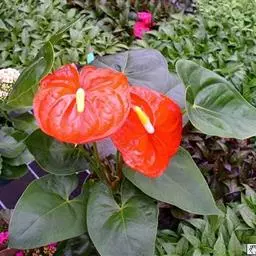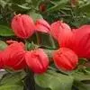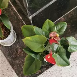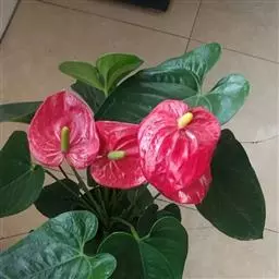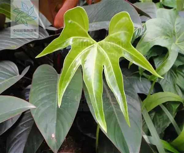 掌叶花烛 掌叶花烛既可观叶又可赏花的室内优秀盆栽植物。花开时,绿叶红花,佛焰苞肥厚硕大,色彩艳丽,光亮如漆。肉穗花序挺立于佛焰苞上,颇像彩色的烛台,异常艳丽、新奇。掌叶花烛花期可持续几周,是优良的盆花。不开花时,叶形优美,色泽嫩绿,又是极其优美、观赏价值高的观叶植物。常置于家庭案几、客厅墙角的几架上及会议室、饭店雅间摆放,是上等的室内绿化、美化观赏植物,深受人们喜爱。