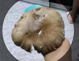 叶片轮廓圆形,直径40-50厘米,亮绿色,具光泽,7-13深裂,裂片披针形或线状披针形,渐尖,最外侧的镰状,各裂片基部联合1/5-1/4,中肋在背面隆起,侧脉纤细,斜伸,集合脉与边缘稍远离。花序柄长40-60厘米。