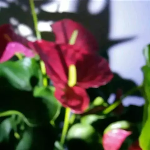对直立性有茎的花烛品种可采用扦插繁殖,剪取带1-2个茎节有3-4片叶的作插穗,插入水苔中,待萌发新根后定植盆内。