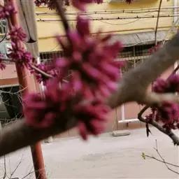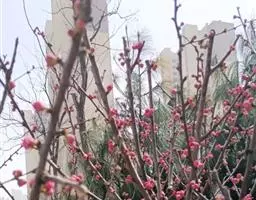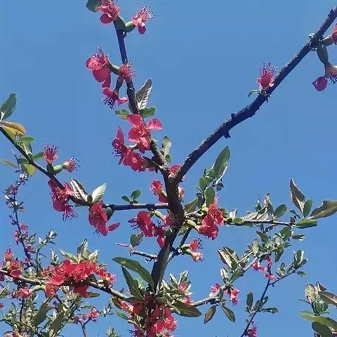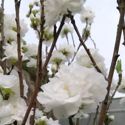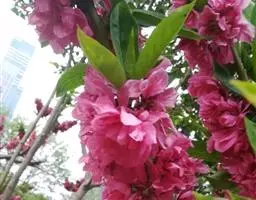 属于观赏桃花类的半重瓣及重瓣品种,统称为碧桃。华东地区碧桃花期是3月~4月,花朵丰腴,色彩鲜艳丰富,花型多。常见的品种有红花绿叶碧桃、红花红叶碧桃,白红双色洒金碧桃等多个变种。碧桃具有很高的观赏价值,在小区、公园、街道随处可见的美丽植物。