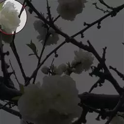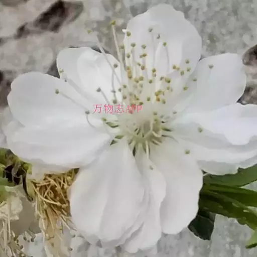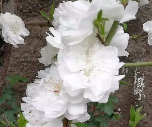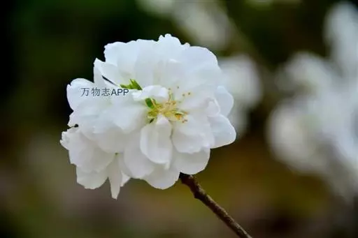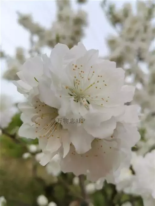 千瓣白桃(群芳谱)f. albo-plena Schneid.花半重瓣,白色。