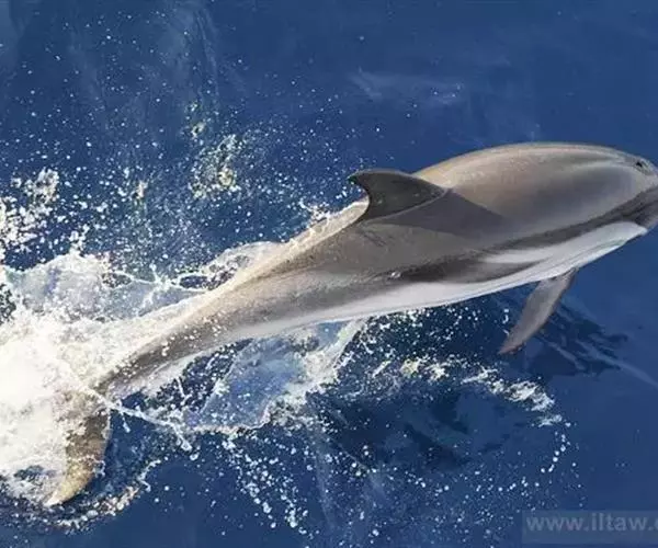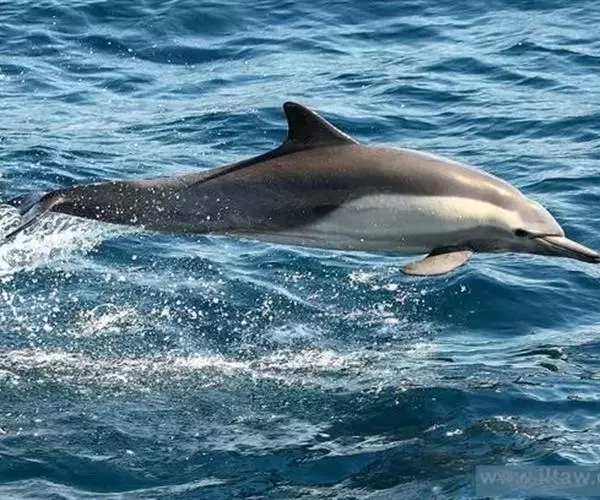 真海豚,身体细而流线型。体色十分复杂而独特,通常十字交叉型,黄褐色在前灰色在后,背面黑色向下延伸,…