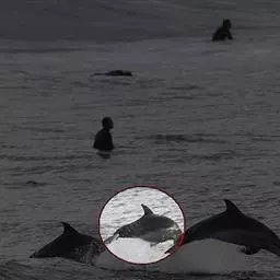 短吻真海豚(Delphinus delphis)分布在大西洋及太平洋,主要生活在远洋及大陆架,短吻真海豚全长1.5米至2.2米,能重达200公斤,据说在2002年捕获的个体全长约2.35米 , 幼海豚体长约0.7米至1米 。 短吻真海豚头骨每边有41至54对牙齿,上颌要较下颌多一至两对牙齿。短吻真海豚并不是随机交配的,根据地理位置不同出现了不同的独立种群。