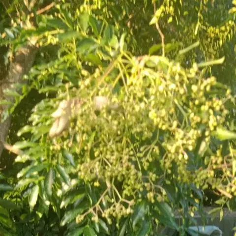 雄花序长2-5厘米;花序轴纤细,初时被毛;花梗基部有苞片1片,苞片阔卵形,两端急尖,内拱,膜质,有中脉,散生油点,长2-3毫米;萼片甚细小;花瓣比苞片小,狭长圆形,上部较宽,有3(-5)脉;雄蕊比花瓣短,与花瓣互生,插生于明显的花盘基部四周,花盘近于正方形,花丝线状,花药广椭圆形;雌花的萼片及花瓣形状与大小均与雄花近似,4个靠合的心皮圆球形,花柱短,粘合,柱头头状。成熟分果瓣阔椭圆形,干后暗褐色,径6-8毫米,每分果瓣由顶端起沿腹及背缝线开裂,内有近圆形的种子1粒。花期4-5月,果期9-11月。