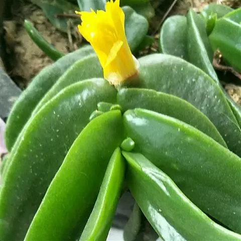 鹿角海棠植株常呈匍匐丛生状,在欧美地区经常被用于盆栽或吊 鹿角海棠 盆栽。绿色肥厚的叶片向外延伸,有很好的垂吊感。与其他品种的多肉植物合栽,也能起到很到的点缀作用。花季开花时,金黄鲜艳的花朵为盆栽增色不少,将它悬挂在室内,更显生机盎然,凸显出节日气氛。