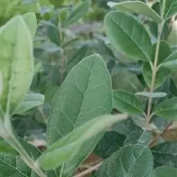 叶片纸质,卵形至卵状披针形,长3.2-4.2厘米,宽2.3-3厘米,先端渐尖或短尖,钝头,基部圆形或微心形,上面绿色发亮,下面颜色较浅,两面无毛,有无数透明腺点,侧脉每边约5条,稍明显,以近45度开角斜出,离边缘约2毫米处汇成边脉;叶柄极短,长约1.5毫米。