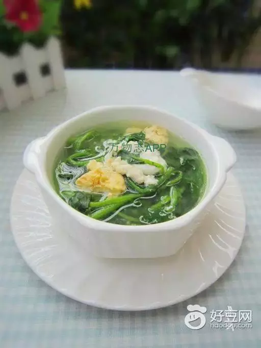 菠菜汤是用菠菜制作的一道汤系菜肴,制作工艺简单,可充分吸收菠菜的营养,清淡可口,有助于补铁、促血、补脑。