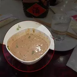 6.淀粉用少量水调开,倒入汤中使汤变得粘稠,最后用盐和胡椒粉调味即可。