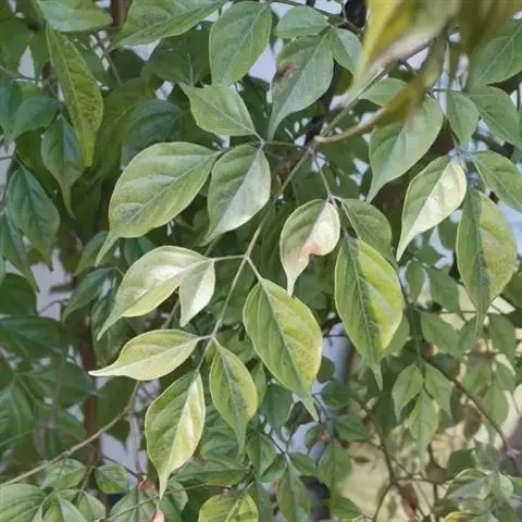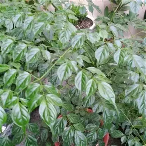叶为1至2回羽状复叶,有时仅有小叶5片;小叶纸质,长圆状卵形或卵形,长4-10cm,宽2.5-4.5cm,顶端渐尖,基部阔楔形,两面无毛,有时上面有极多数细小的斑点,侧脉每边5-6条,纤细,支脉稀疏,呈网状。