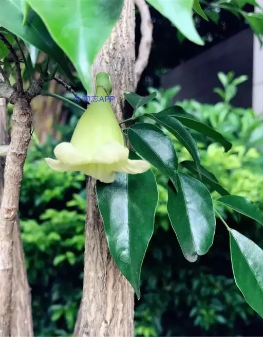 花序腋生或侧生,少花,为总状花序或少分枝的圆锥花序,比叶短。花萼淡红色,筒状,不整齐,长约1.8cm,3-5浅裂。花冠淡黄色,钟状,长3.5-5cm,直径约15mm,最细部分直径达,mm,内面被柔毛,裂片阔肾状三角形,宽10mm。