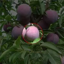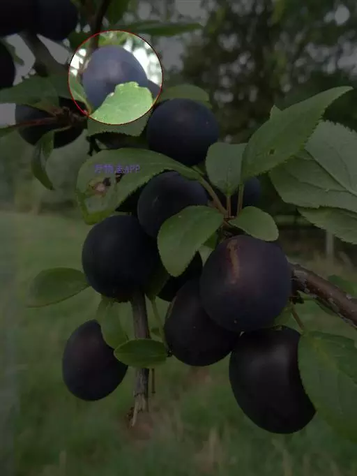 核果通常卵球形到长圆形,稀近球形,直径1~2.5cm,通常有明显侧沟,红色、紫色、绿色、黄色、常被蓝色果粉,果肉离核或粘核;核广椭圆形,顶端有尖头,表面平滑,起伏不平或稍有蜂窝状隆起;果梗长约1.2cm,无毛。花期5月,果期9月。2n=48。
