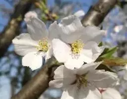 花1~3朵,簇生于短枝顶端;花梗长1~1.2cm,无毛或具短柔毛;花直径1~1.5cm;萼筒钟状,萼片卵形,萼筒和萼片内外两面均被短柔毛;花瓣白色,有时带绿晕。