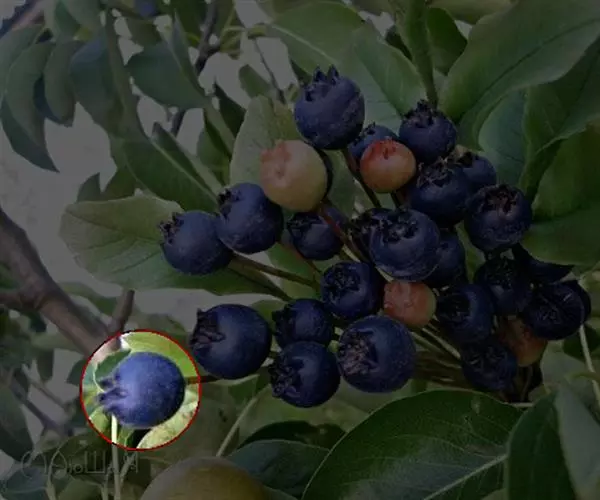果实长卵形,果实蓝黑色。果粉厚,果肉淡黄色,果肉质地硬韧,甜酸,耐贮运,鲜食品质上等,成熟期较晚。