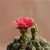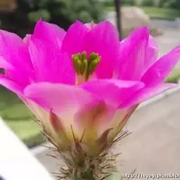 绯花玉 Speg.)是仙人掌科、裸萼球属多肉植物,植株呈扁球形,表皮墨绿色,刺针状,…