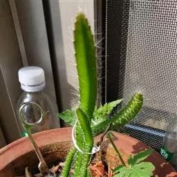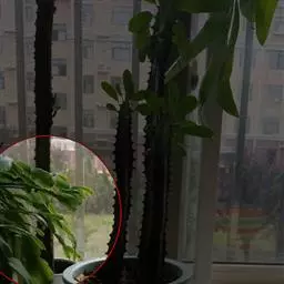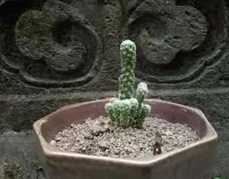 樱麒麟是仙人掌中最原始的一群,也是唯一具有木质茎和叶片的仙人掌类群。它茎杆处聚有针刺,如七星并列,故东南亚华人称它“七星针”。