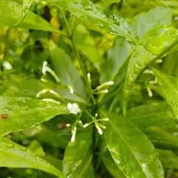 夜来香 Merr.)是夹竹桃科夜来香属柔弱藤状灌木;小枝被柔毛,黄绿色,老枝灰褐色,渐无毛,…