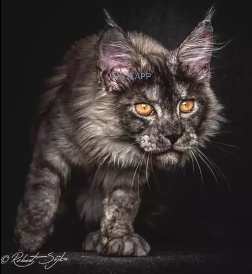 缅因库恩猫每窝产2-4只仔猫,仔猫的大小和毛色差异很大,其发育缓慢,4岁时才能达到完全成熟。