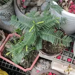 竹柏 竹柏深受庭园、住宅小区及街道绿化人员的选择,一般偏好用大苗移栽。株距以4米、6米为宜,也可根据实际需要确定。挖穴规格视苗木粗细而定,以0.5-0.8米见方,深0.4-0.6米为宜。移植前,应在穴底部施足基肥(也可在种植成活后追肥)。竹柏大苗起苗必须带土团,土团大小依苗木而定,一般胸径3-5厘米带土团直径为15-30厘米。起苗时,先挖去土团周围土壤,用草绳将土球上部缚牢并扎紧,以防土团松散。然后将底部土挖去,切断主根,轻抬至地面,再用草绳将整个土团缚好、扎牢。栽植前应合理修剪枝叶,以防水分蒸发造成干枯。苗木放人栽植穴后,应将草绳四周剪断,以利填土时紧密结合,并使草绳易腐烂,栽好时苗根际表土应高于地面5-10厘米,并浇透水一次,视移栽季节考虑蔽荫情况,成活率一般可达95%以上。