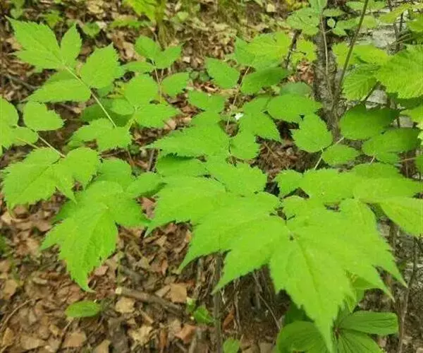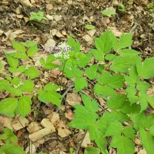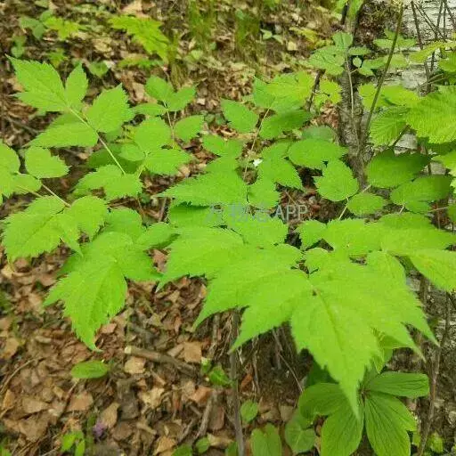 多年生草本。根状茎横走,质坚实,外皮黑褐色,生多数细长的根。茎高30-80厘米,圆柱形,粗4-(6-9)毫米,微具纵稜,下部无毛,中部以上被白色短柔毛,不分枝。叶2-3枚,茎下部的叶为三回三出?鹱锤匆叮叱け灰镀切危泶?27厘米;顶生小叶卵形至宽卵状菱形,长4-8.5厘米,宽3-8厘米,三裂边缘有锐锯齿,侧生小叶卵形至斜卵形,表面近无毛,背面变无毛;叶柄长10-17厘米。茎上部叶的形状似茎下部叶,但较小,具短柄。