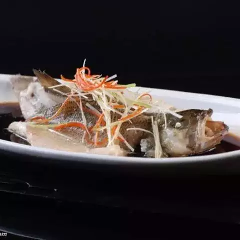 清蒸过江鱼是一道美食,由活鲤鱼、葱等原料做成。