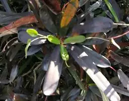 叶薄革质,长圆形,长9-13厘米,宽3-5厘米,先端短渐尖,有钝头,基部楔形,边缘有不规则浅波状锯齿,两面无毛,近同色,侧脉7-8对,网脉明显;叶柄长约1.5厘米,无毛。