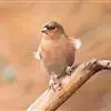 红眉朱雀:体长15厘米,是一种中等体型的朱雀。上体褐色斑驳,眉纹、脸颊、胸及腰淡紫粉,臀近白。…