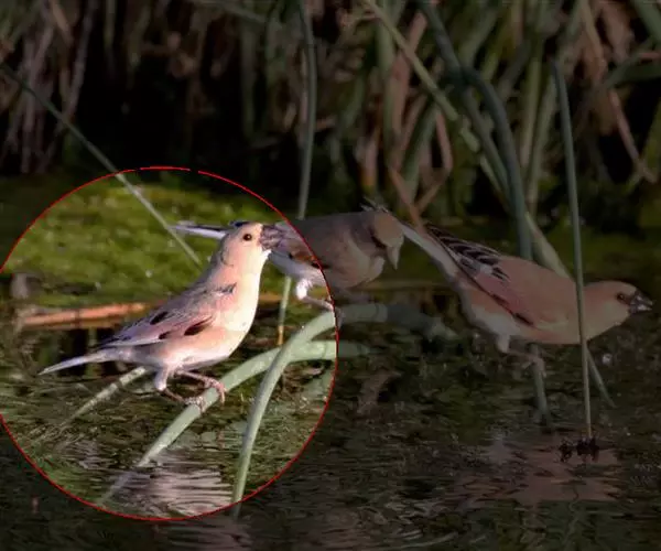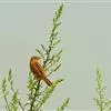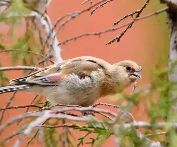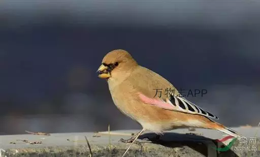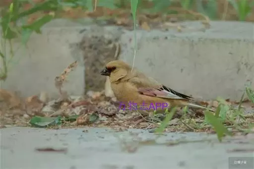 雌鸟和雄鸟相似,但上体更多皮黄色而少赭色,羽色较暗淡,翅上粉红色斑不显著,眼先不为黑色。