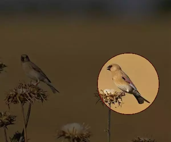 巨嘴沙雀(学名:Rhodopechys obsoleta)为雀科沙雀属的鸟类。体重21-30克,体长132-162毫米。两翼粉红,嘴亮黑,翼及尾羽黑而带白色及粉红色羽缘,具厚大的黄嘴,两翼及眼周绯红。雄鸟头顶黑褐,背褐有黑色纵纹,腰褐而沾粉红;眼周绯红,颊褐,眉纹。雌鸟似雄鸟但色暗且绯红色较少,雄鸟眼先黑色而雌鸟眼先无黑色。与所有相似种类的区别在体羽纯沙色且嘴黑。与其他沙雀的区别在色较深,体羽多杂斑,顶冠色深且嘴较厚。虹膜深褐色,嘴黑色,脚深褐色。