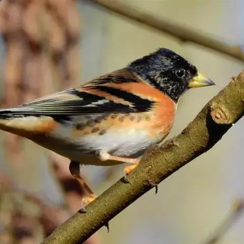 燕雀属小型鸟类,体长14-17厘米。嘴粗壮而尖,呈圆锥状。雄鸟从头至背辉黑色,背具黄褐色羽缘。腰白色,…